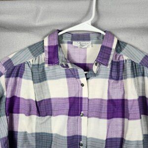 Jessica Scott Womens Purple/Gray Plaid Button-Up Shirt Size 16