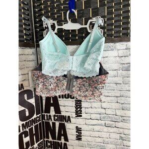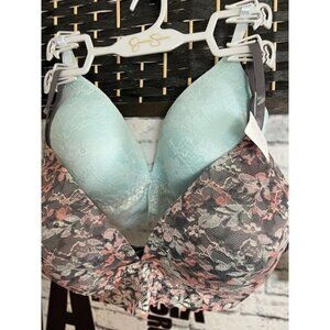 ITEM: Jessica Simpson 2 Pk 38C Gray-Turquoise Floral Lace Wireless Extra Comfort Bra