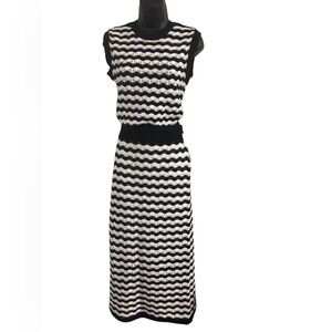 Jessica Simpson 2pc black white crochet look sleeveless top and midi skirt set