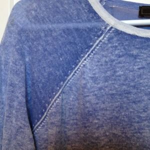 Very comfy and is in excellent condition. Only worn a few times! Sweater is blue, high low, and has a distressed look.