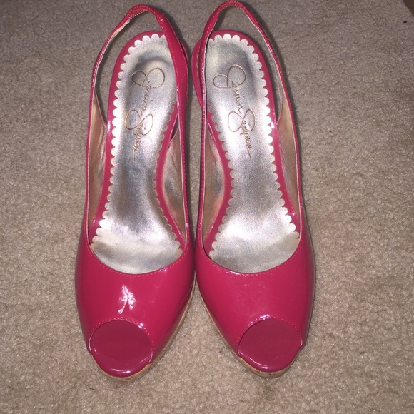 Used Jessica Simpson heels! Worn a couple of times! Size: 6! The color is more of a watermelon pink!