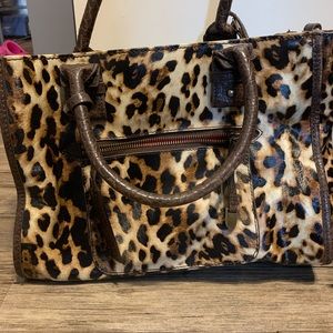 Does the side of the bag have the name Jessica Simpson on it or is that the bottom? Also is the bag calf hair or more of a vinyl?