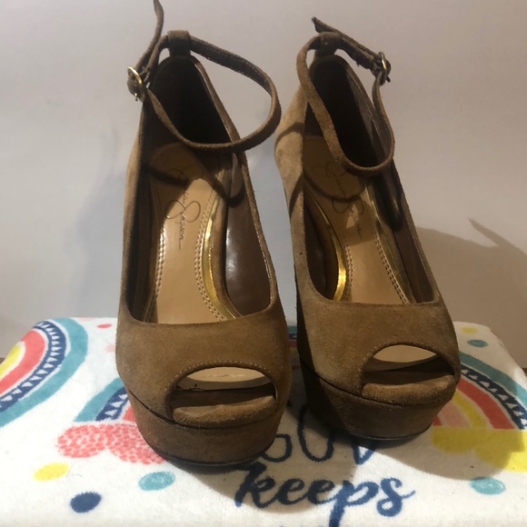 Jessica Simpson Stacys Almond Veronica suede 5” heel 1” platform Some stains on heel. See pictures