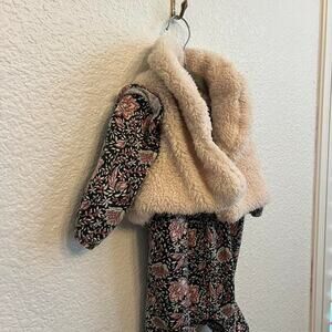 Jessica Simpson flower romper and Sherpa vest set. Size 6-9 months. The romper has a thin fleece lining. Has some wash wear, but otherwise in pristine condition.