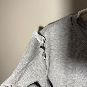 Jessica Simpson Activewear Top. Gray with frill shoulders and decorative waist. Women's size XL. Gray color