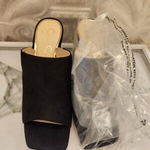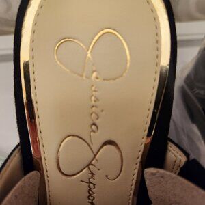 Jessica Simpson Aishia 2 Jet Black Micro Faux Suede Wedges. NIB. Size 9.5. Brand new in original box/packaging. No rips/stains/scuffs/tears/peeling. One shoe was tried on, I see scant amount of dirt markings, see final picture. No flaws. Still in plastic sleeves. Smoke free home. No odors. All offers are welcome! Thank you!
