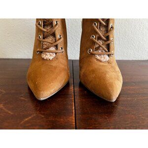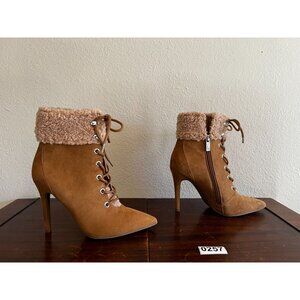 Jessica Simpson Ankle Boots Womens Sz 6.5 Tan Stiletto Heel Vegan Faux Fur Cuff