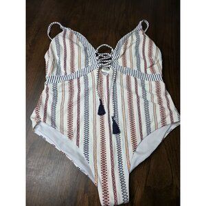 Jessica Simpson Aztec Boho Front Lace-Up One-Piece Swimsuit Size XL