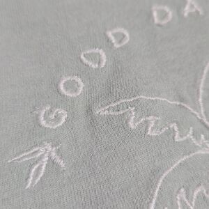 Design: Embroidered "Good Days Only" with palm tree, ocean, beach design
