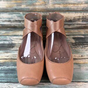 Jessica Simpson Ballet Flats Womens 8M Beige Leather Casual Shoes Flats Slip Ons