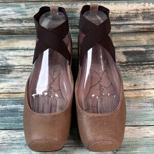 Jessica Simpson Ballet Flats Womens 9M Brown Leather Casual Shoes Flats Slip Ons.