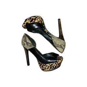 Jessica Simpson Bede2 Snake Leopard Black Colorblock Platform Heels 8