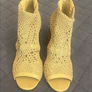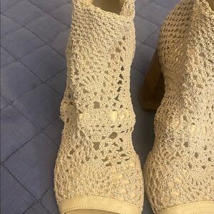 Jessica Simpson Beige Crochet Peep Toe Booties