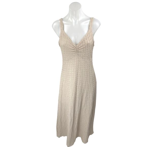 Jessica Simpson Beige Sleeveless Eyelet Knit V Neck Cami Tank Midi Dress Size L