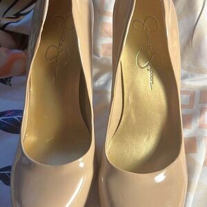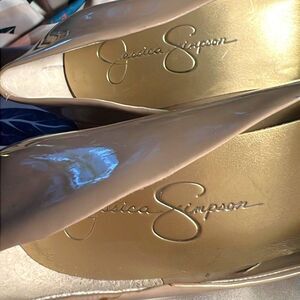 Jessica Simpson Beige Tan Patent Faux Leather Heels