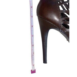 Elevate your style with these stunning Jessica Simpson Birdy platform heels. Crafted from high-quality brown leather, these open-toe heels feature a lace-up closure for a comfortable fit. The platform style adds an extra boost of height, making them perfect for any occasion.
