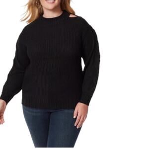 Jessica Simpson Black Cable Knit Shoulder Cutout Sweater Plus 2X