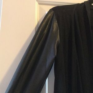 Stylish black cardigan. Open front design. Long sleeves with a sleek finish.