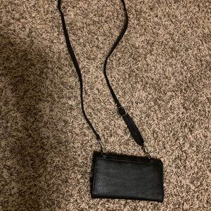 Jessica Simpson Black Clutch Purse 6 Inches Shoulder Strap Card Holder Trifold