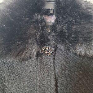 Jessica Simpson coat, faux fur collar, black coat, women's coat, winter coat, large coat, textured coat, elegant coat, button closure, long sleeve coat, luxury coat, formal coat, casual coat