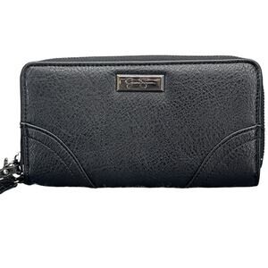 Jessica Simpson Black Leather Butterfly Wristlet Zip Wallet