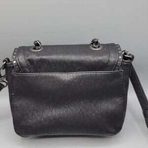 Jessica Simpson Black Leather Flap Messenger Bag w/ gunmetal chain & long strap