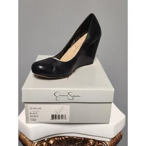 Jessica Simpson Black Leather Kellie Wedge Heel Size 10