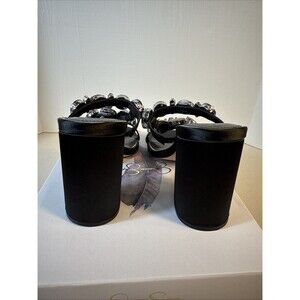 Elevate your evening look with these stunning Jessica Simpson JS-MILIR sandals. Designed in luxurious black satin with oversized rhinestone embellishments, these slip-on mule heels deliver both sophistication and sparkle. The open square toe and comfortable block heel make them the perfect choice for weddings, cocktail parties, or any special occasion where you want to shine.