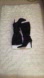 Chic black over the knee boots. Sleek design with a high heel. Perfect for stylish outings.