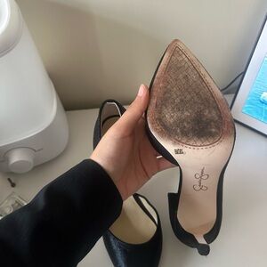 Chic black heels with a pointed toe. Ideal for versatile styling.