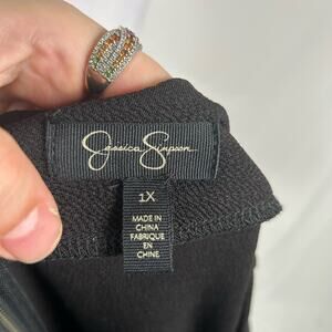 Jessica Simpson Black Rhinestone Short Sleeve Dress Plus 1X Business Party Beads