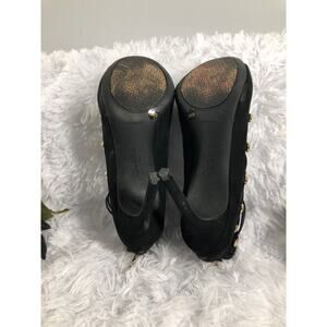 Jessica Simpson Black Suede Open-toe Stiletto Heel Gold Button Straps Zip Back9M