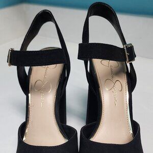 Jessica Simpson Black Suede Peep Toe Ultra High Block Heels Sz 8.5