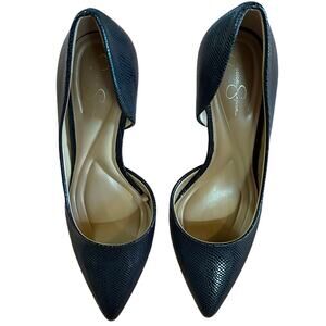 Jessica Simpson Black Textured Faux Snake D’Orsay Pumps Heels Size 8M / EU 39