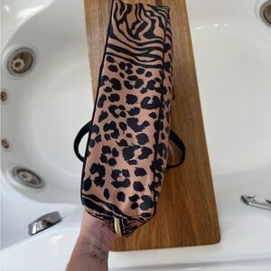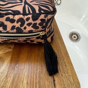 Chic animal print design. Ideal for storing beauty essentials. Easy to carry.
