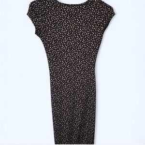 Super cute black and white floral midi dress about knee length. Middle cutout section , Tshirt style sleeves.