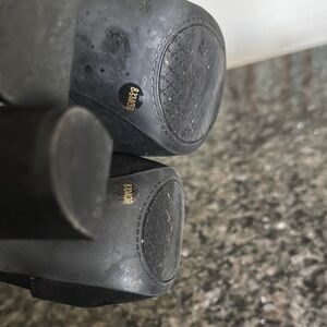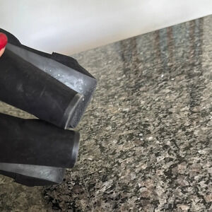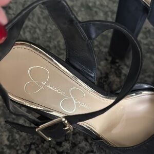 Jessica Simpson Black suede Chunky Platform Heels with Gold Buckle EUC 8.5