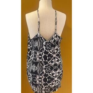 Jessica Simpson Blouse Top Womens XL Black White Geo Print Spaghetti Halter.