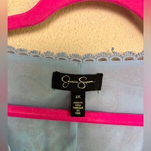 Jessica Simpson Blue Boho Paisley Chiffon Long Sleeve Crochet Trim Blouse 2X