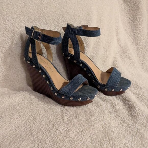 Sexy Blue Denim Studded Wedges!! Worn Only Once!!!