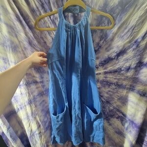 Jessica Simpson Blue Halter Pleated Neckline Deep Front Pockets A-line Dress 6