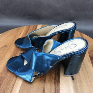 Jessica Simpson Blue Metallic Slides Block Heel Sandals Womens Size 6 B