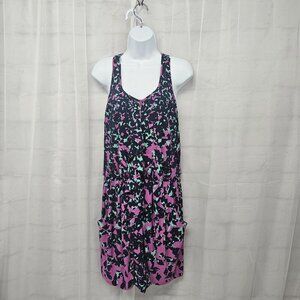 Jessica Simpson Blue Purple Sleeveless Dress Abstract Sporty Ruffle Zip 6