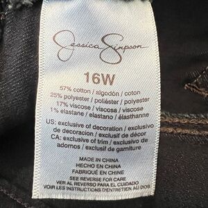 These Jessica Simpson jeans feature a classic straight leg design in a deep blue shade. Made from medium-weight denim, they provide a smooth texture and a comfortable fit. The consistent color and timeless style make them a versatile wardrobe staple.