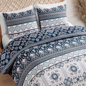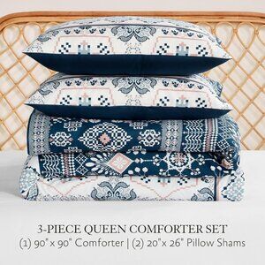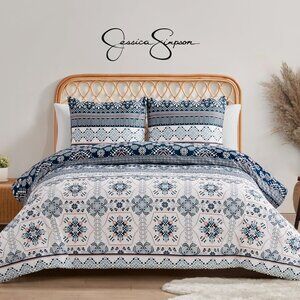 Jessica Simpson Boho Print Comforter Set QUEEN Southwestern Ikat Bedding Set 3pc