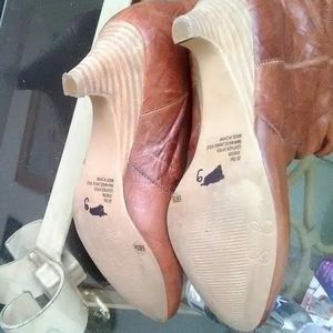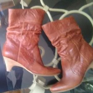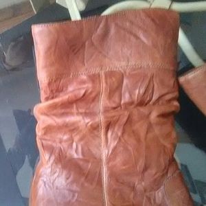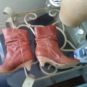 Rust color bunched textured leather, 3inch heel, ankle boot.upper leather, gently used, small scuff on right toe as shown in pic.
