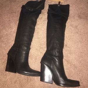 Jessica Simpson Women's Forester Boot,Black, 9.5b US (39.5) leather Manmade sole Shaft measures approximately 24" from arch Heel measures approximately 3 3/4--- WORN ONCE! Great leather- Great condition! "FAIR" OFFERS ARE WELCOMED- FYI- NO BOX OR DUFFLE BAG