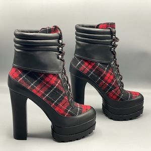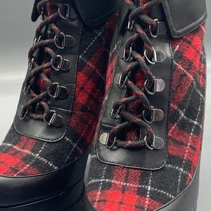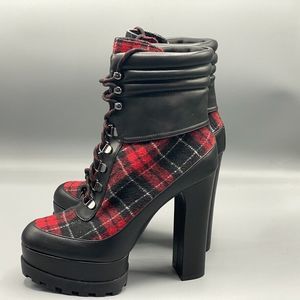Jessica Simpson Boots 9 Red Black Tartan Plaid Platform Boots Edgy Hunter
