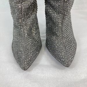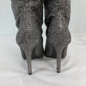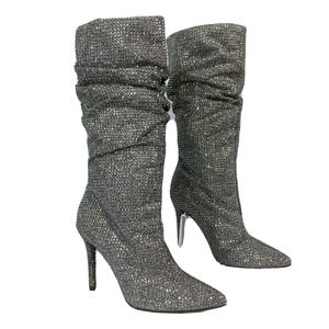 Jessica Simpson Boots Womens Sz 6.5 Silver Rhinestone Stiletto Scrunch Layzer