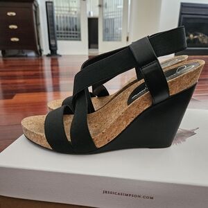 Add textural intrigue to your look with the Brisy sandal from Jessica Simpson. These wedges feature a stretchy slingback strap for a custom fit and are finished with a cork footbed for comfort and ease.